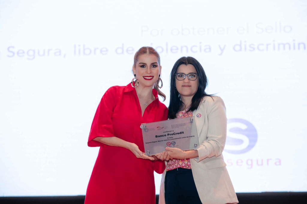 ● El Sello Empresa Segura (SES) resalta el compromiso de Banco ProCredit con la erradicación de la violencia y la promoción de la igualdad de oportunidades entre mujeres y hombres.
