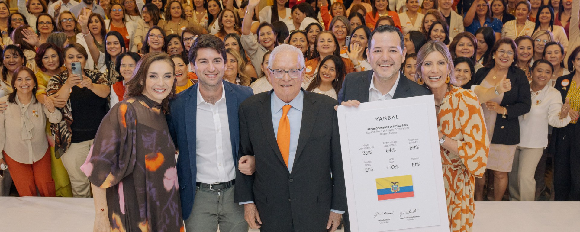 · El evento contó con la presencia de las tres generaciones de Yanbal: Fernando Belmont (fundador), Janine Belmont (hija) y Gonzalo Aguirre (nieto) llegaron al país y reafirmaron su compromiso en promover el emprendimiento y empoderar a la mujer ecuatoriana.
