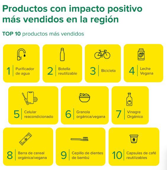 El estudio arroja, además, que actualmente en Mercado Libre hay más de 2,7 millones de compradores de productos con impacto positivo, un crecimiento de 27% en comparación con el año anterior, donde más de 38 mil emprendedores ofrecen productos con impacto positivo con beneficios para el planeta y para las personas, promoviendo un estilo de vida y hábitos sustentables.