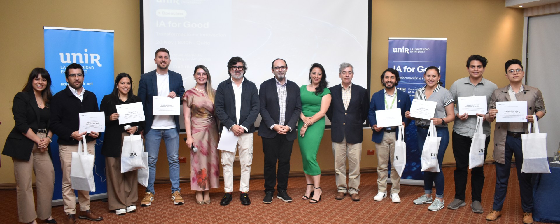 La Universidad Internacional de La Rioja (UNIR) celebró el Hackathon ‘IA For Good: Transformación e Innovación’ con el objetivo de democratizar la inteligencia artificial y orientarla al desarrollo social en Ecuador. El evento reunió a más de 300 profesionales, emprendedores, estudiantes universitarios y representantes del sector público y privado en Quito (formato hibrido) y en Guayaquil (presencial), fomentando una verdadera comunidad abierta a todo perfil profesional.